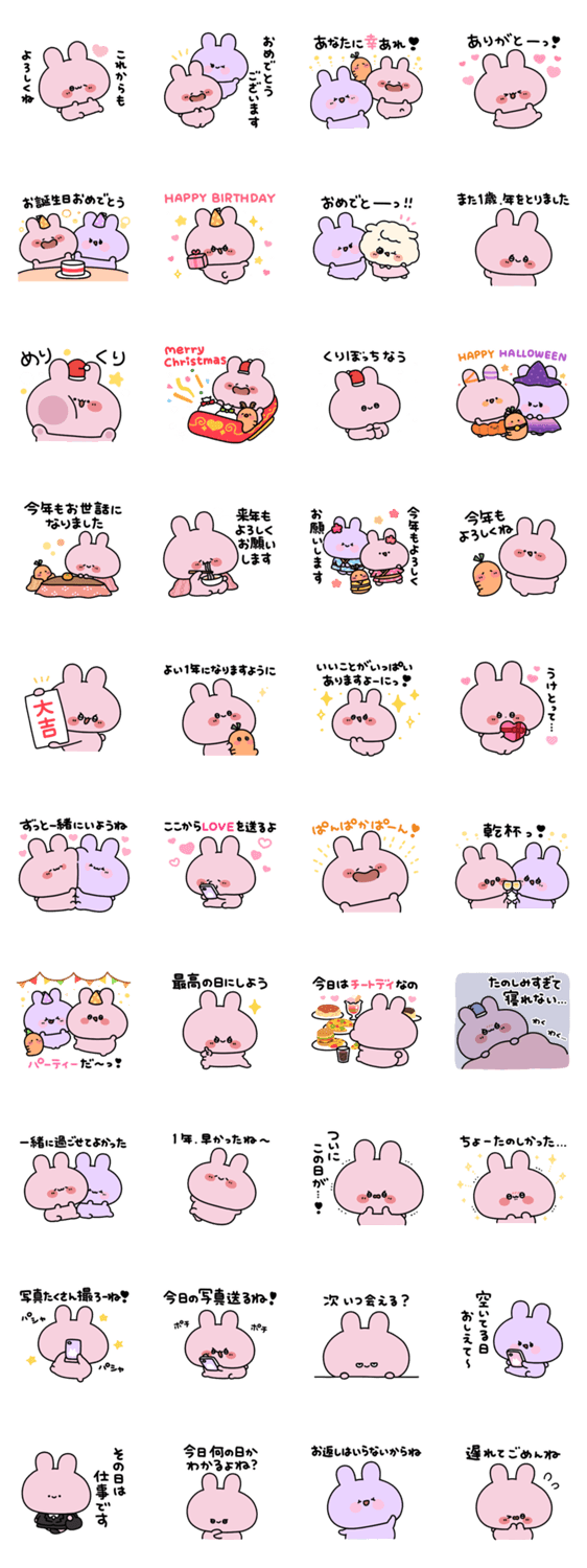 | スタンプ説明 | あさみみちゃんの、イベントや記念日に使えるスタンプが登場❣️ もちろん日常でも使いやすいスタンプも❣️ |