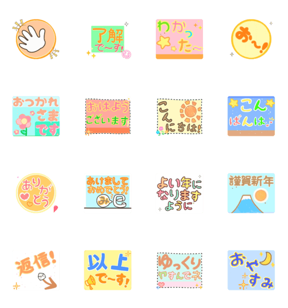 うごく! カラフル & シンプルな でか文字の 毎日 + いつでも使える 挨拶 & あけおめ × 巳年の かわいい アニメーションスタンプです☆ ご閲覧頂き ありがとうございます!
