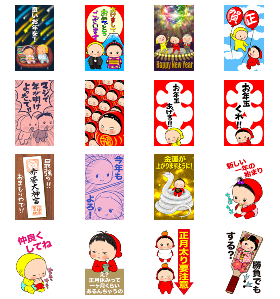 きーくん、あーちゃんの あけおめスタンプ ※このスタンプはトークルームで大きく表示されるBIGスタンプです。