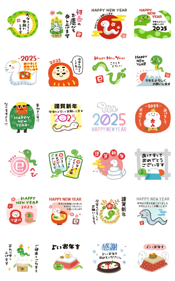 お正月の飛び出して動くスタンプです!巳年/年賀状/蛇/よいお年を/今年もよろしく/あけましておめでとう/謹賀新年