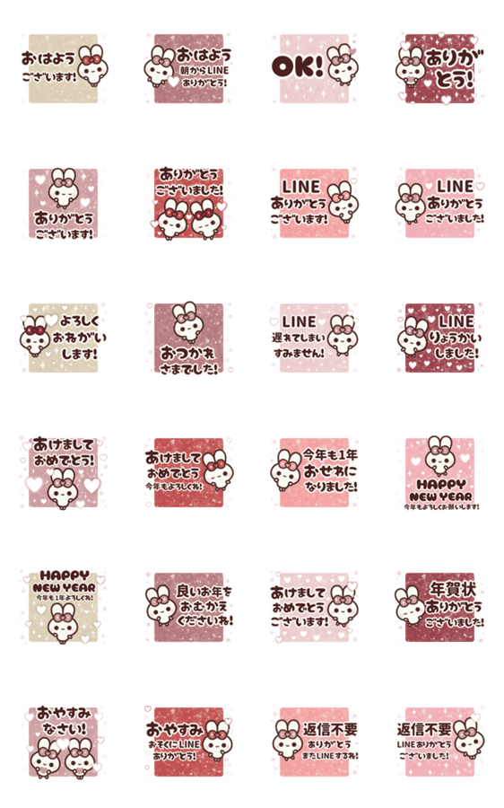 【⬛背景が動く年末年始✖毎年使える✖フキダシの大人シンプルで控えめな挨拶や敬語の定番LINEスタンプ❤️⬛】【お正月】【年賀状】【ピョンピョンラビット】【©AIIAIIA】