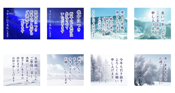 | スタンプ説明 | 北海道 #年賀状じまい #寒中見舞い 喪中につき新年のご挨拶をご遠慮申し上げます,年賀状じまい,大人,上品, 控えめスタンプ,8こセット #喪中ハガキ #雪国 |