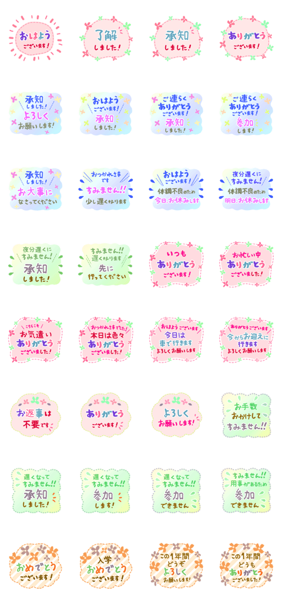 通学班/子供会で使えるシンプルな長文スタンプ!参加します/車で行きます/返信不要/お大事に/おめでとう/卒業 #歩いて行きます 役員 学校 年中使える 太鼓稽古 班長 代表