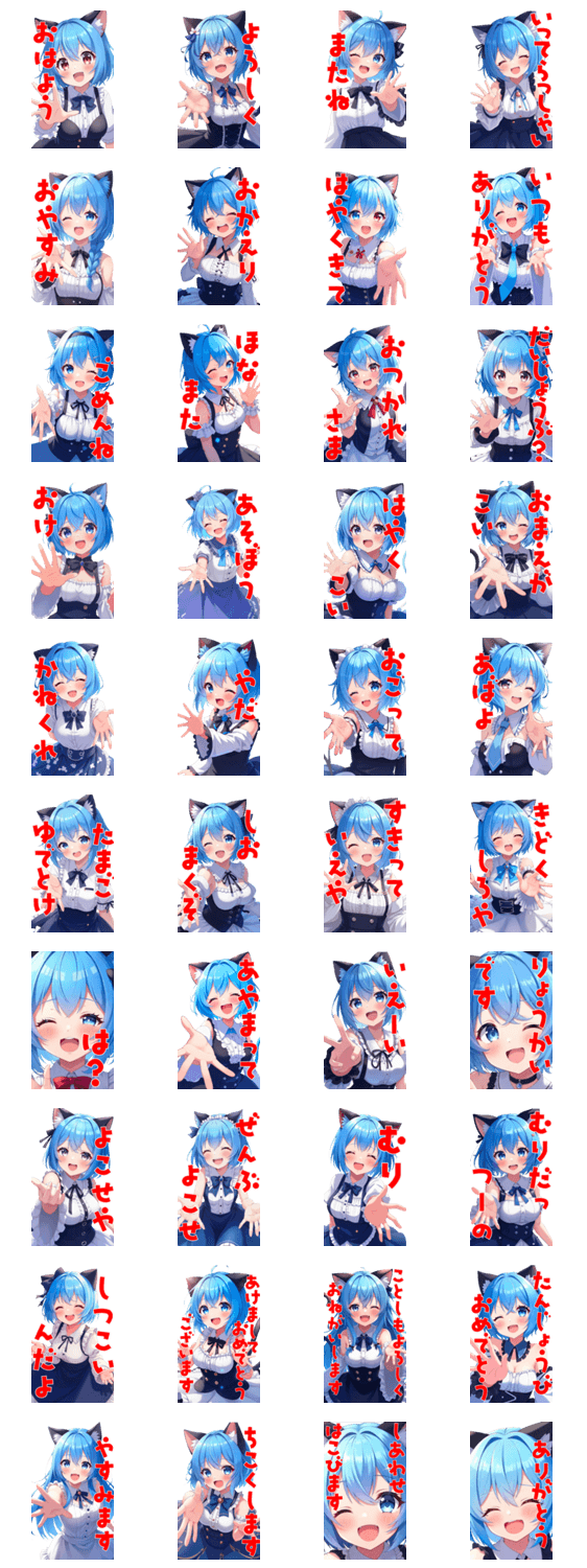 可愛いメイドさんのスタンプです。 ひらがなのみのとても読みやすいスタンプです。 ※このスタンプはトークルームで大きく表示されるBIGスタンプです。