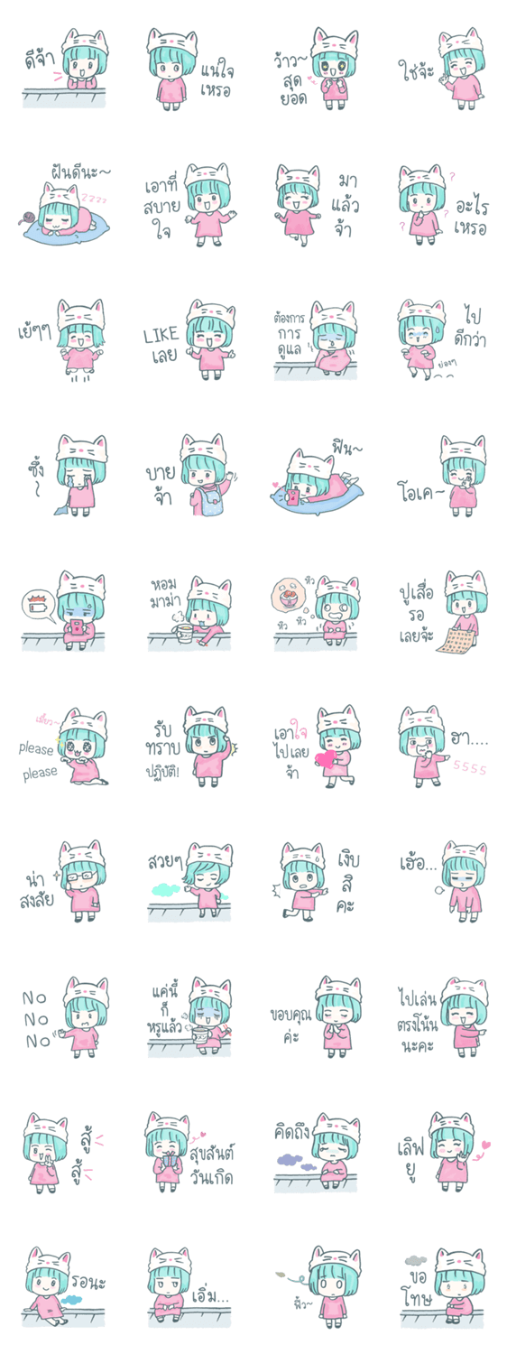 白ネコのあいうえお・・・ってるスタンプ