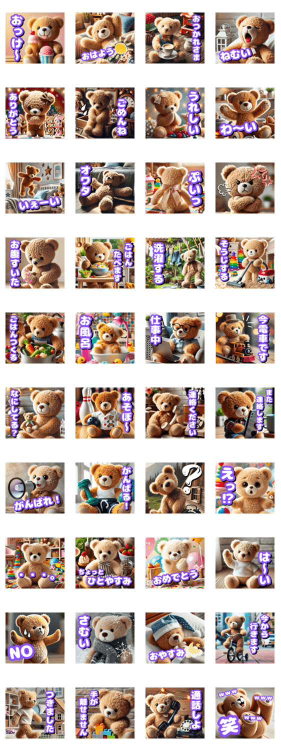 普段使いできる、かわいいテディベアのスタンプです。色んなくまちゃんがトークを盛り上げてくれます♪