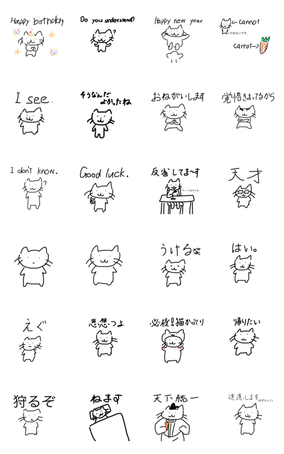 白ネコのあいうえお・・・ってるスタンプ