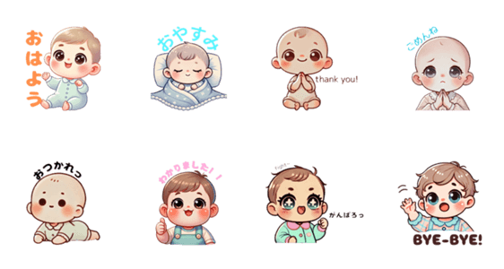 | スタンプ説明 | 赤ちゃんのイラストであいさつ編を作ってみました!! |
