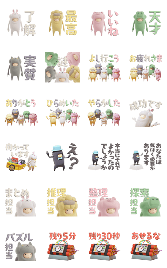 リアル脱出ゲームのSCRAP公式キャラクターSCRAPPIESのオリジナルキャラクタースタンプ。リアル脱出ゲームに友達を誘うときにも使える便利なスタンプです。