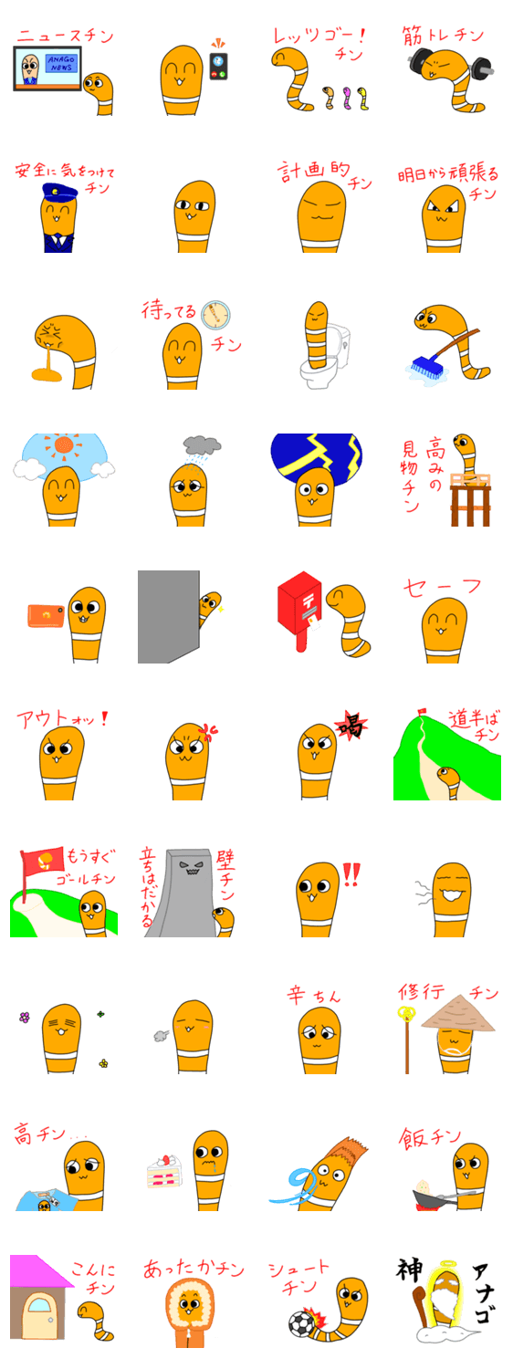 可愛い海の生き物、ちんあなごのちんちゃんです!晴れ・雨・雷・怒り・唖然・喝・掃除・自撮り・ほんわか・トイレ・筋トレ・料理・神・修行・サッカーなど盛り沢山です。
