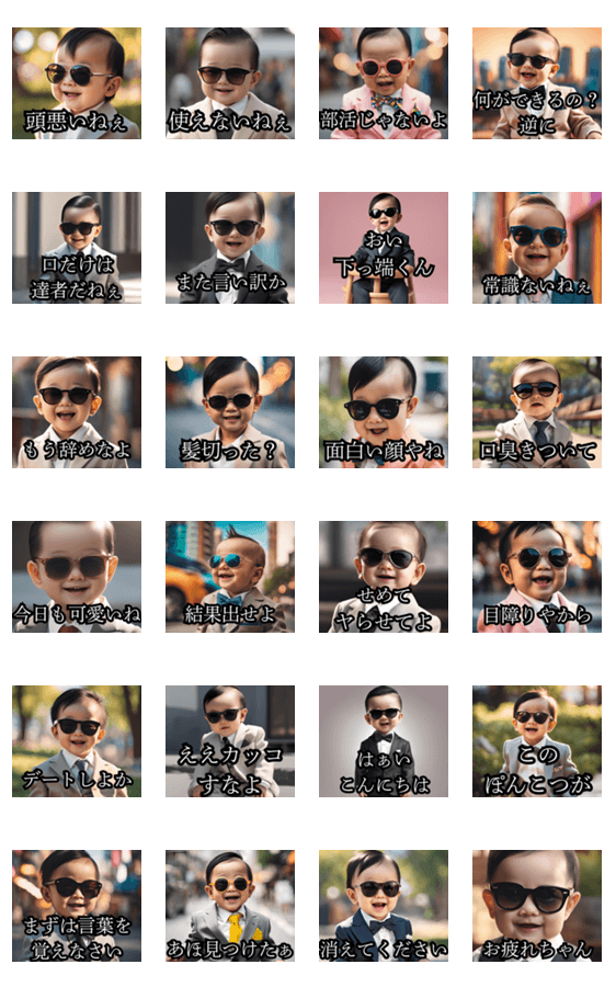ハラスメントしてくる赤さんのスタンプです。【やくざ/ヤクザ/極道/日常/ネタ/怖い/警告/煽り/赤ちゃん/可愛い/セクハラ/パワハラ】