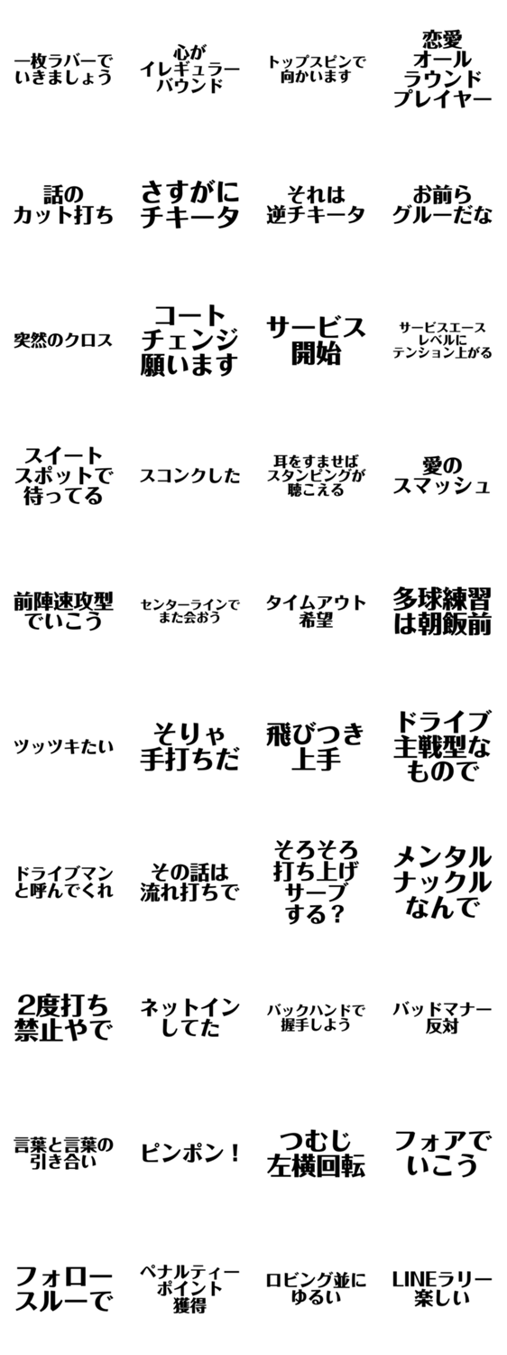 卓球好きな方が使いやすい日常会話をスタンプにしました。卓球部や卓球経験者の方、卓球ファンの方など幅広く使用してください。