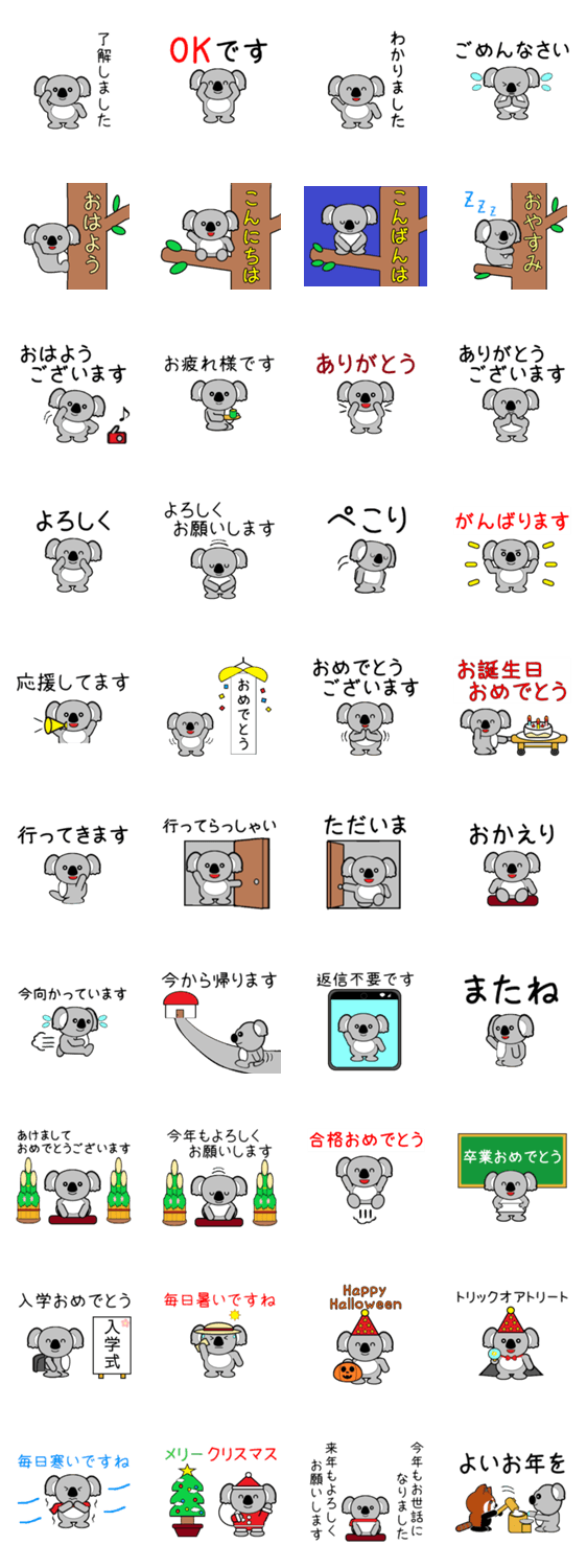 コアラのスタンプです。年中使えるスタンプ・絵文字特集参加スタンプです。