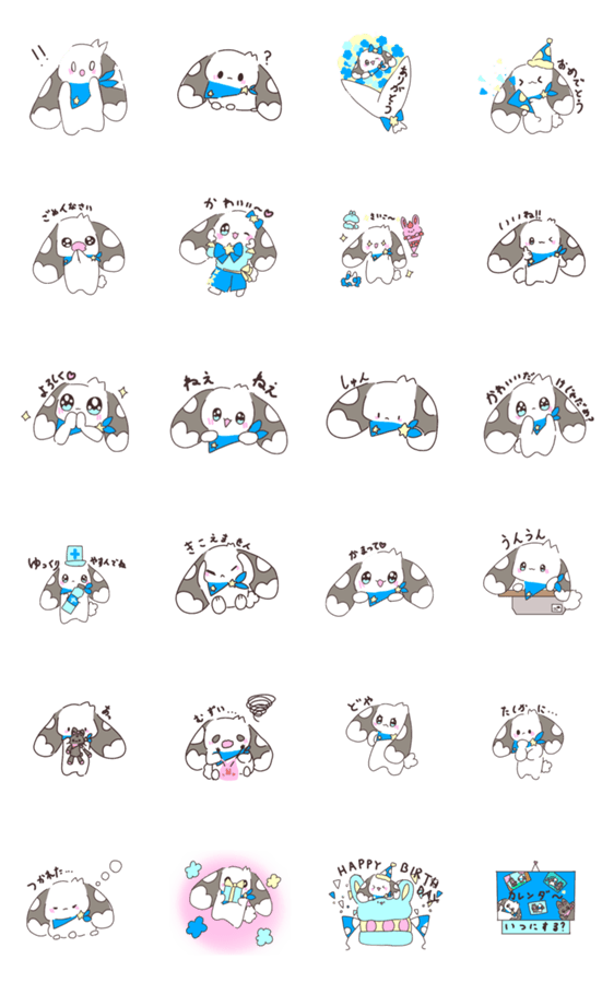 ロップイヤーのうさぎ あざとかわいいらむねくんの日常使いできる 使いやすいスタンプです。