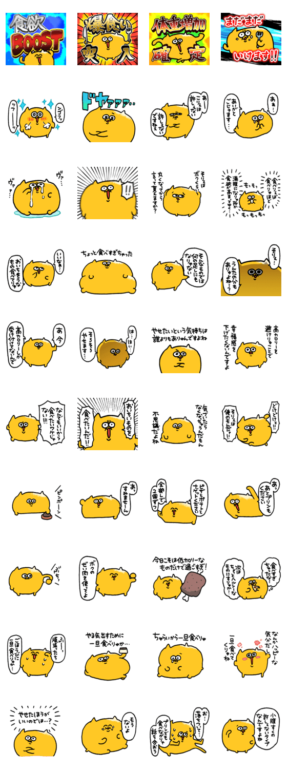 ちょっと食べすぎちゃった!そんな時にはこのふくよかうんたねこスタンプを使いましょう!たぶんカロリー消費します。たぶん。