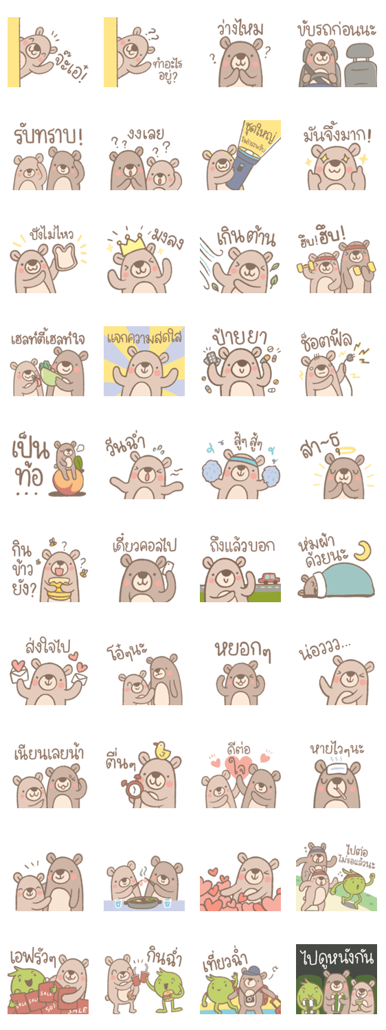 | スタンプ説明 | Two teddy bears and Aunjai |