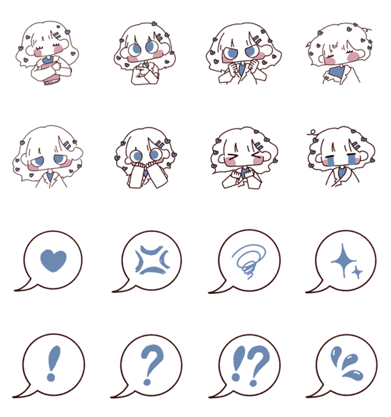 ゆるかわなイラストで描いた理系の女の子、ブルーちゃんの詰め合わせスタンプですわ!