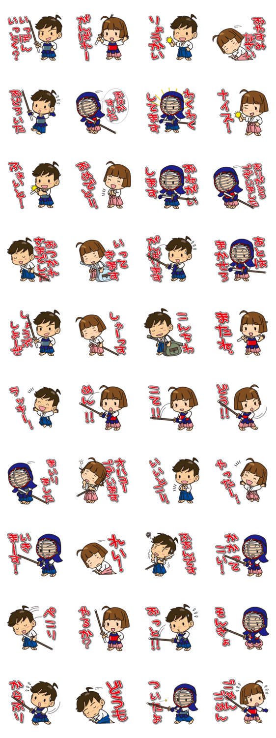 | スタンプ説明 | cuteboys and girls at playing kendo. |