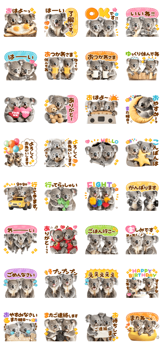 まったり癒しのコアラちゃん達が可愛くごあいさつ♪年中使えるスタンプです♪