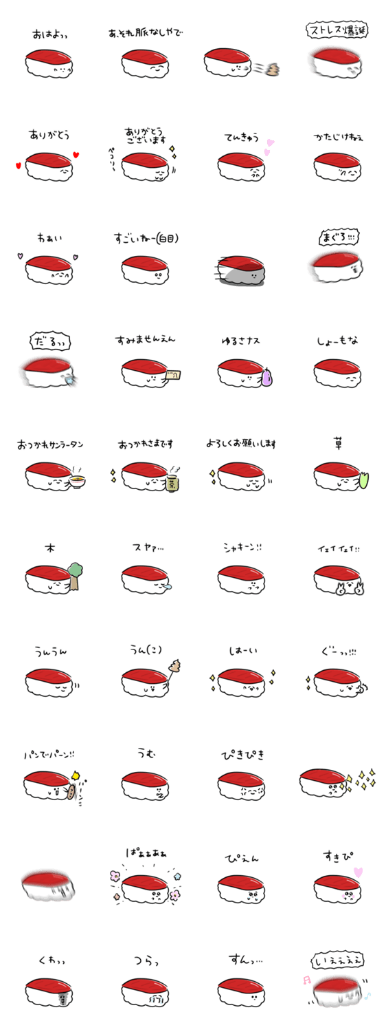 まぐろすしのシンプルで使いやすいスタンプです。[ゆるかわ シュール 可愛い 食べ物 敬語 ダジャレ 毒舌]