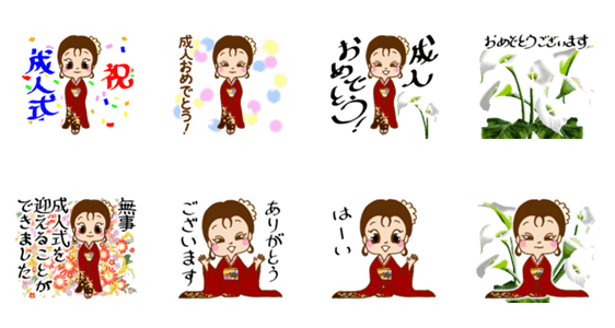 かすみちやんの成人のお祝いスタンプ -LINEスタンプマニア