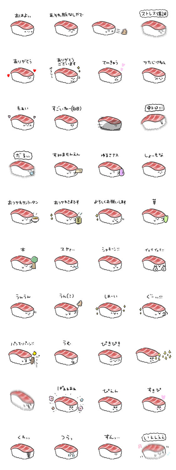 ちゅうとろすしのシンプルで使いやすいスタンプです。[ゆるかわ シュール 可愛い 食べ物 敬語 ダジャレ 毒舌]