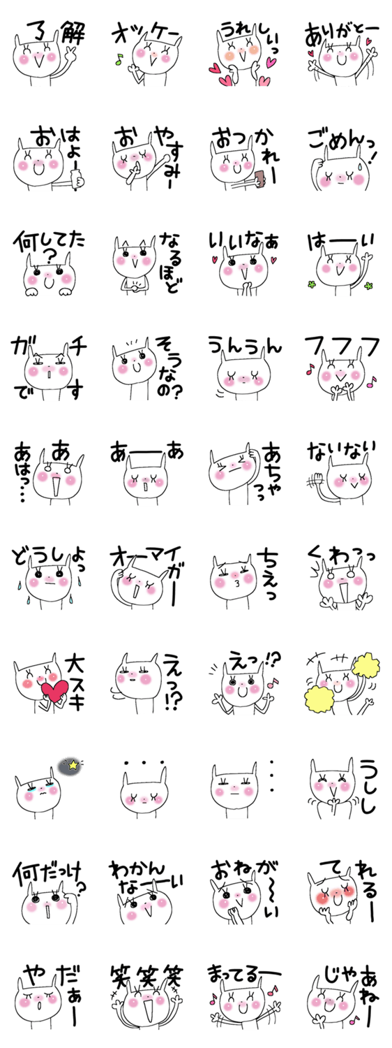 白ネコのあいうえお・・・ってるスタンプ