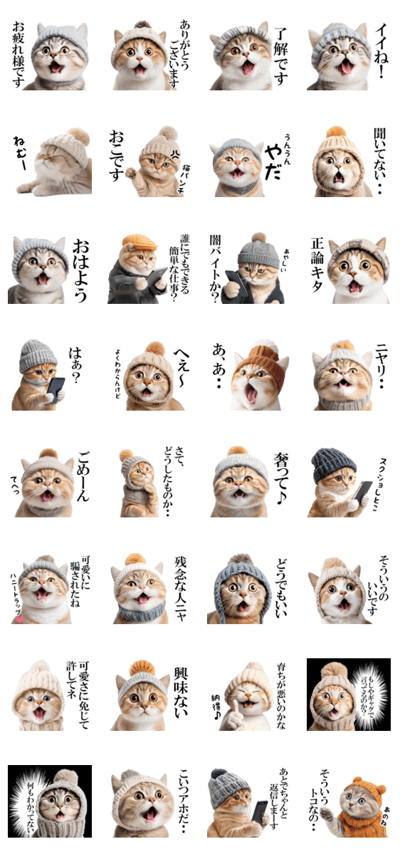 ニット帽子が可愛い猫です ねこ/ネコ/かわいい/日常会話/感情表現/毒舌/煽り/驚き/動物