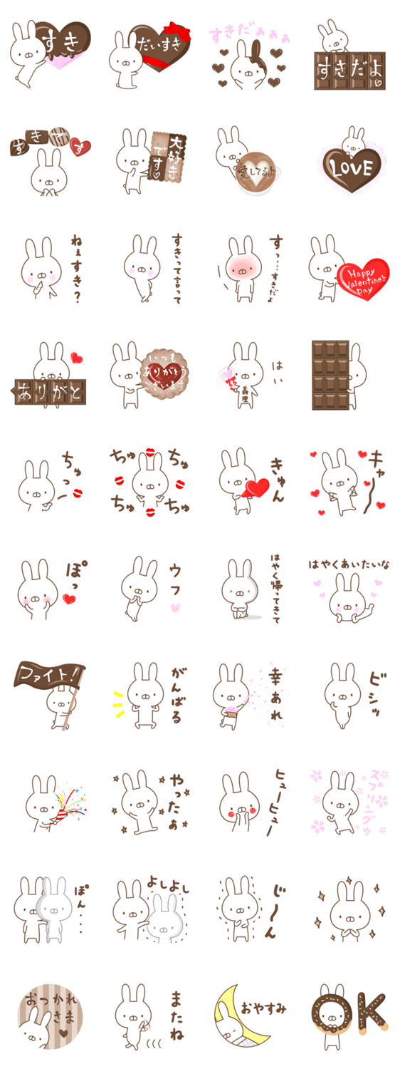 バレンタインにピッタリ!うさぎとチョコのスタンプです。