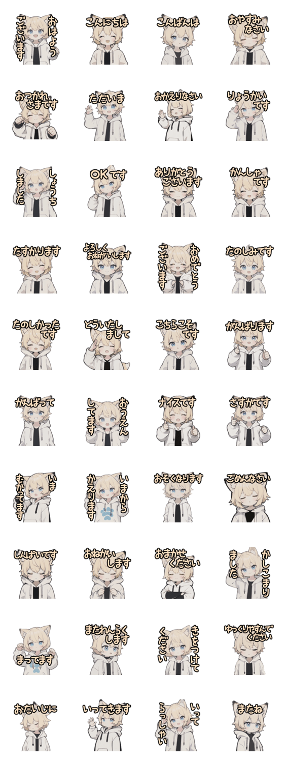 きんいろ子狐がモチーフの男の子。基本的なあいさつから細かな気遣いまで、日常会話で無難に使いやすいスタンプ。デカ文字/見易い/丁寧/きつね/キツネ/ゆるい/デフォルメ