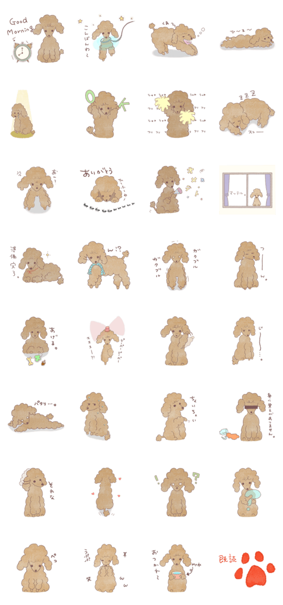 ゆるい手書きなふわふわプードル.愛犬にそっくりなスタンプで生活に癒しを. 挨拶/リアクション/ネタでご家族や友達に日常で活躍! ラムクリップ/レッド/アプリコット/トイ