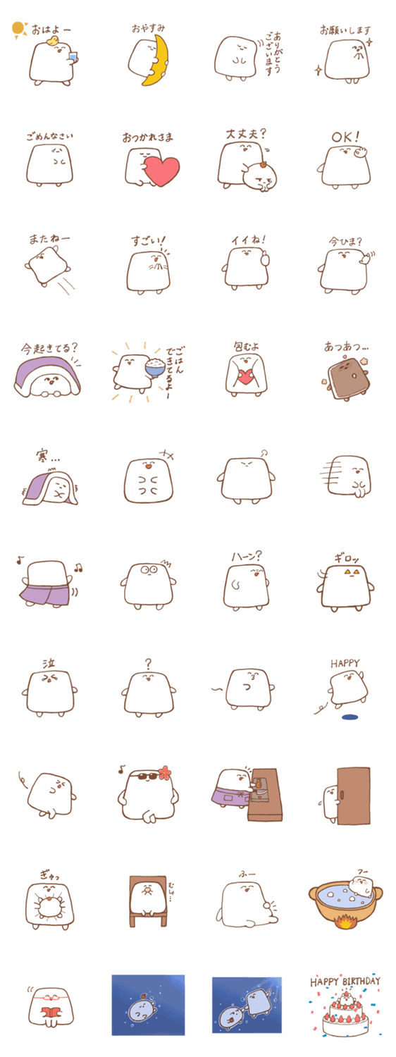 はんぺんお母さんのスタンプです。日常で使えそうなゆるい感じになってます。