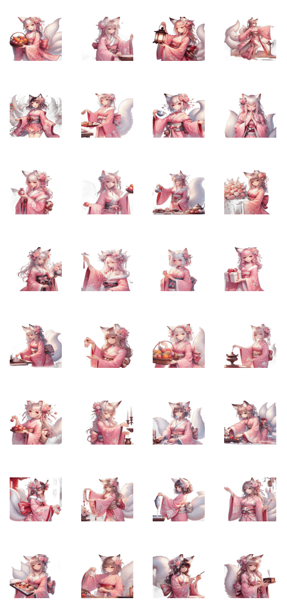 | スタンプ説明 | "九尾の狐 友達のために祈る絵文字ステッカー、祈り、祝福、友情、九尾の狐、LINEスタンプ、イラスト、コミュニケーション、 |