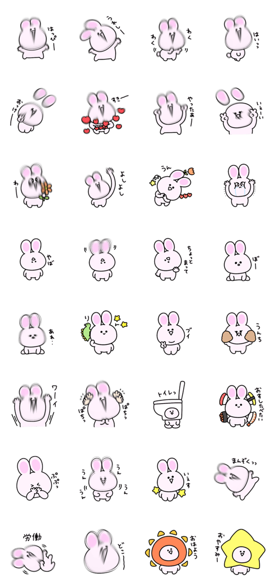 感情が高ぶるシュールなミニうさぎのスタンプです。