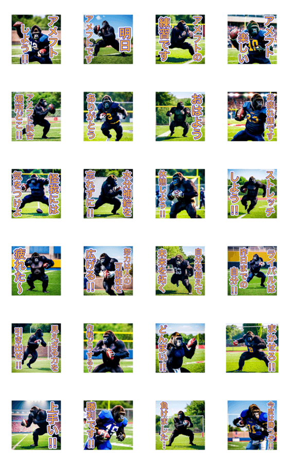 スタンプ説明 アメリカンフットボールが好きなゴリラ