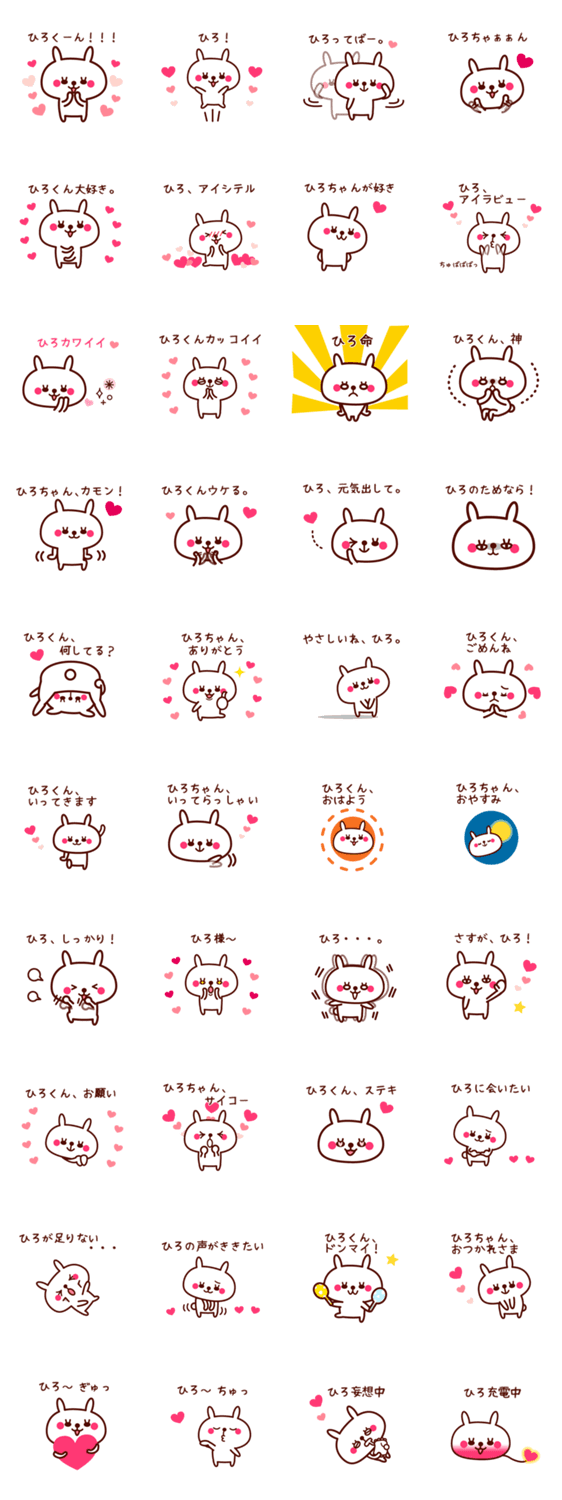 | スタンプ説明 | ひろくん、ひろちゃん、大好きなヒロに愛を添えて送る名前スタンプ♪ |