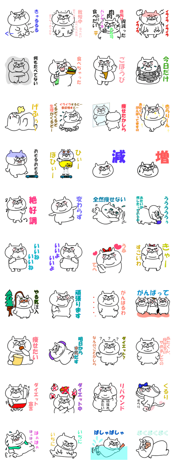 おブスでおデブで出っ歯で二重アゴ!愛くるしさ満点のねこスタンプです。かわいいだけじゃだめかしら、おデブなままじゃだめかしら、ダイエット用にそうでなくても使えます
