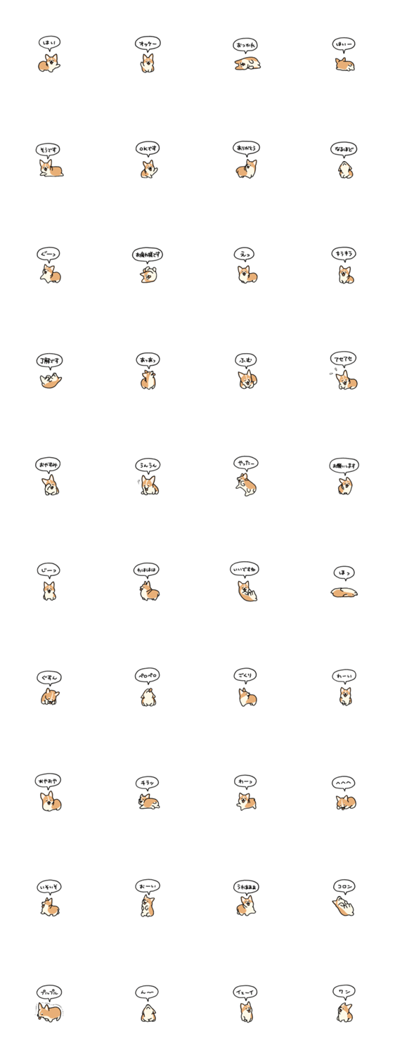 ちいさい。かわいいイヌ。いぬの犬種。コーギーが一言ふきだします。スタンプのサイズを小さめにしています。