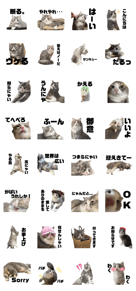 白ネコのあいうえお・・・ってるスタンプ