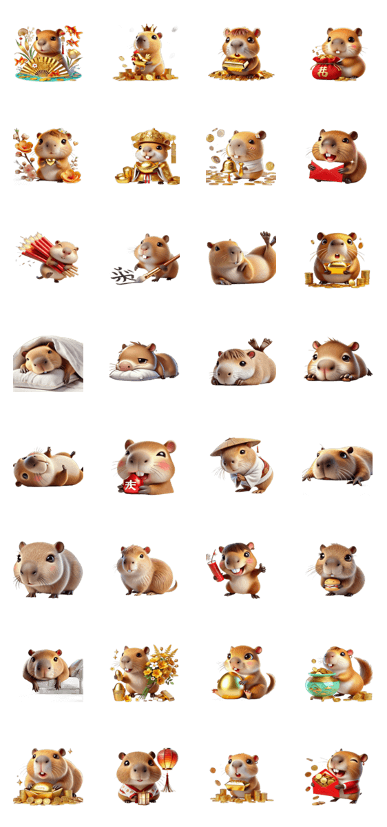| スタンプ説明 | "カピバラ 祈福と大金絵文字ステッカー、祈り、富、祝福、幸運、財神、LINEスタンプ、イラスト、コミュニケーション、 |