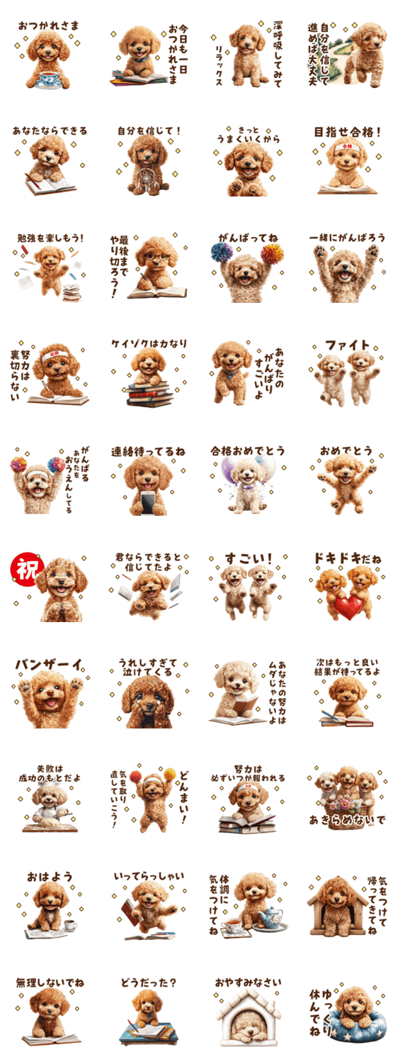 トイプードルの受験応援スタンプ -LINEスタンプマニア