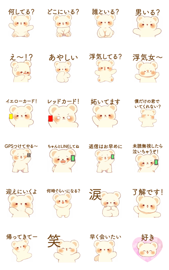 彼女へのネタ用スタンプです。妻や友達に対しても使えるよ。(くま,恋人,彼氏,彼女,カップル,嫉妬,夫婦,友達,浮気)