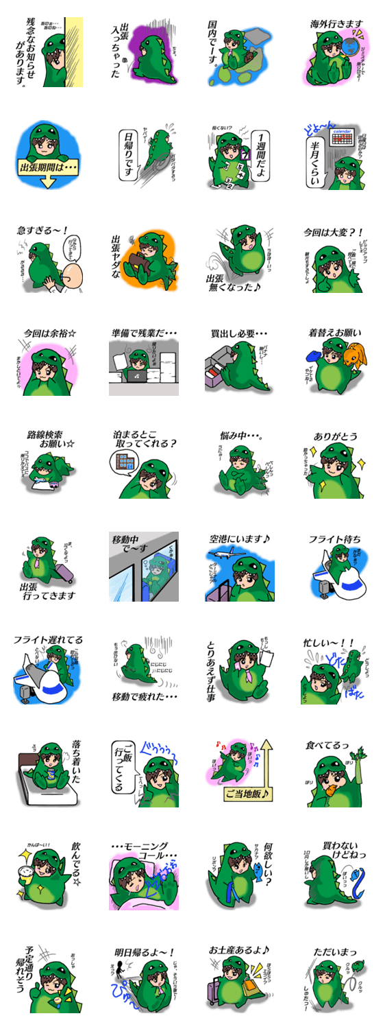 着ぐるみまぁくんの出張スタンプです。家族への連絡やお知らせに。出張以外でも、フライト有りの旅行などでも使えます。別セットの数字スタンプと組み合わせると更に便利。