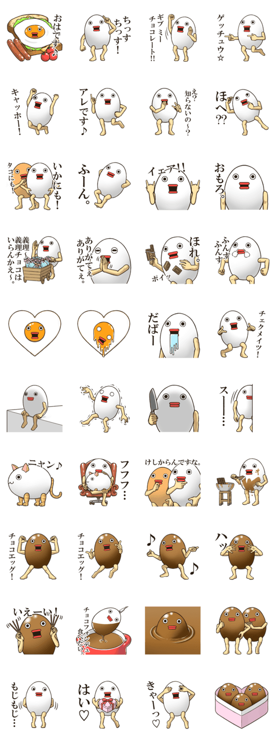 少し生意気な卵のスタンプ、第8弾です。バレンタインシーズンにもお使いいただけます。