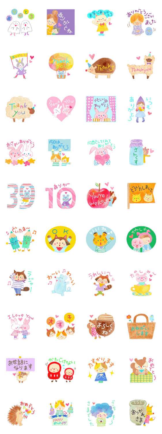 「ありがとう」の感謝の気持ちをウサギ、ネコ、アライグマなどいろんな仲間達が伝えます。