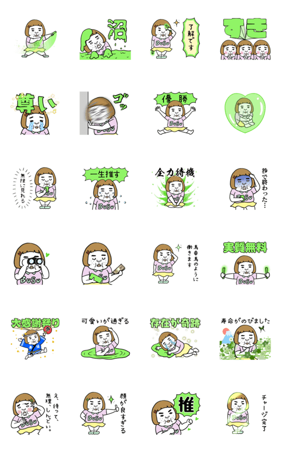 動く!憎めないブス【黄緑推し】 -LINEスタンプマニア