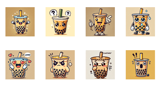 タピオカのキャラクター「茶太郎」が、日常のさまざまなシーンをかわいく表現!喜怒哀楽をこのスタンプで伝えよう!