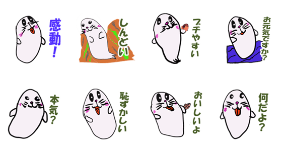 にじげん名駅の利用者さんが作成したゴマアザラシのスタンプ第2弾です! 目指せ1万ダウンロード!!