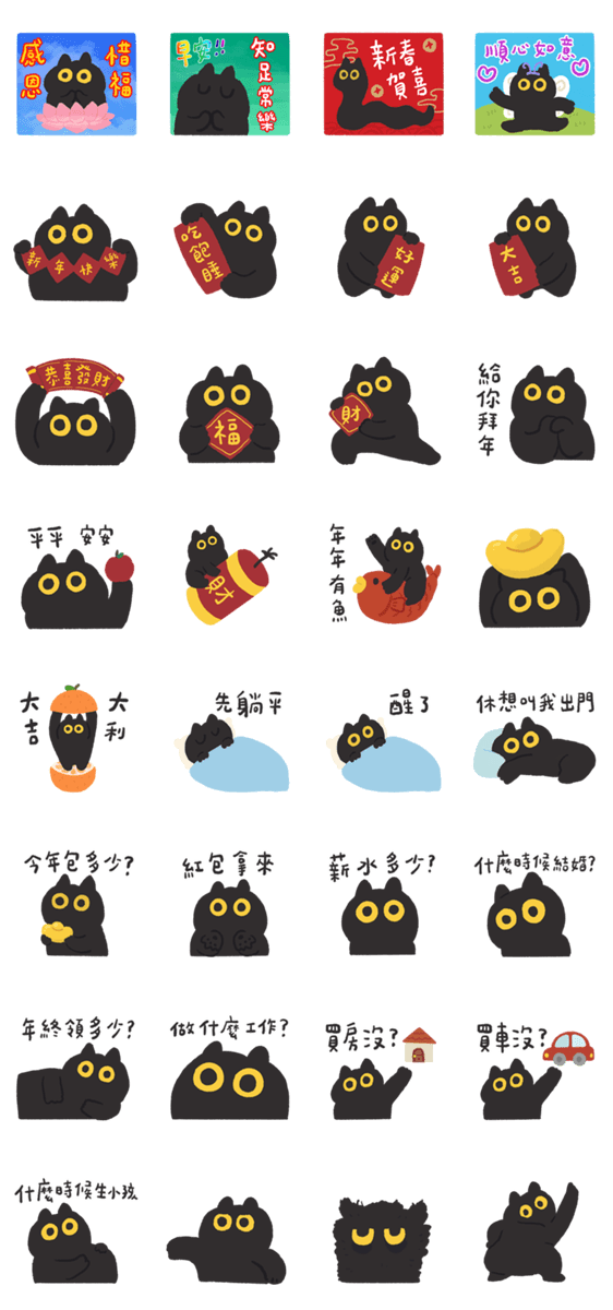 Black cat Pepper 2025 New Year -LINEスタンプマニア
