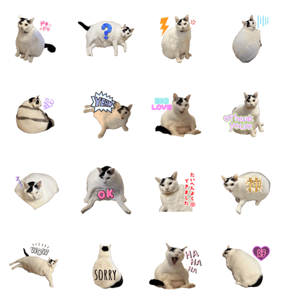白ネコのあいうえお・・・ってるスタンプ